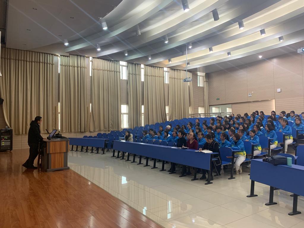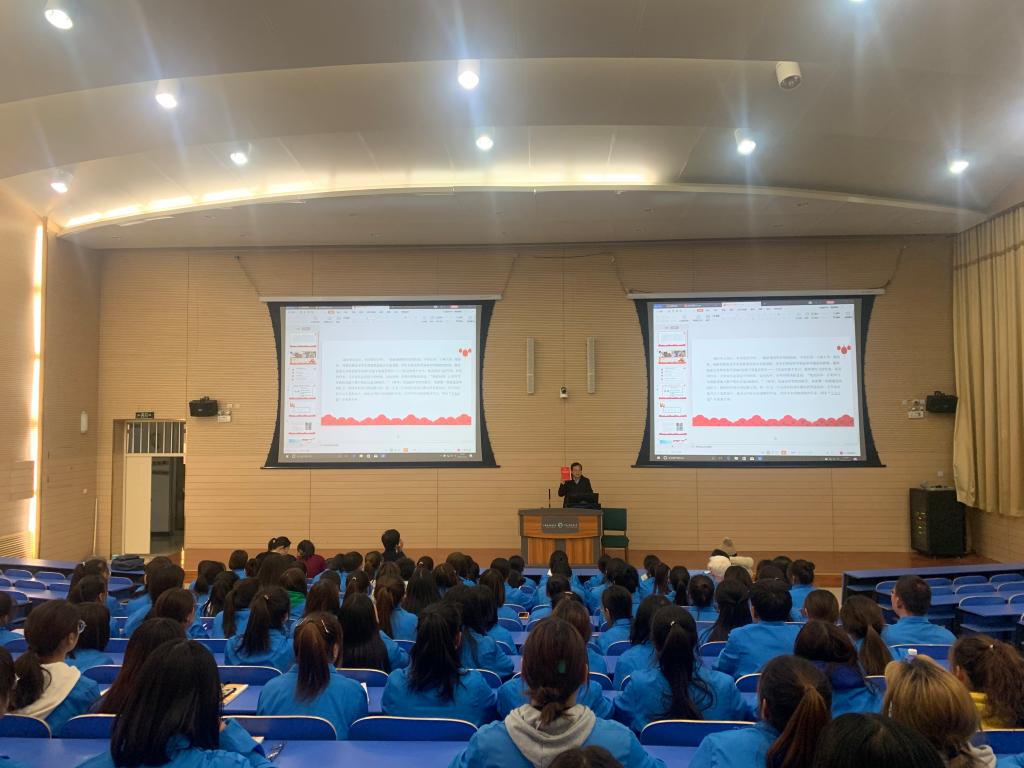 2019年11月25日下午,健康管理与社会服务系全体党员,无课教师,员工代表,在竞智楼二楼阶梯教室举办“不忘初心、牢记使命”主题教育专题党课,系党支部副书记俞莹磊以“学习黄大年,争做优秀党员”为主题进行了宣讲,党课活动由系党支部书记于兰主持。